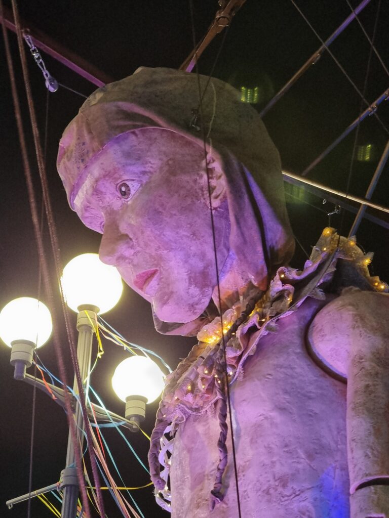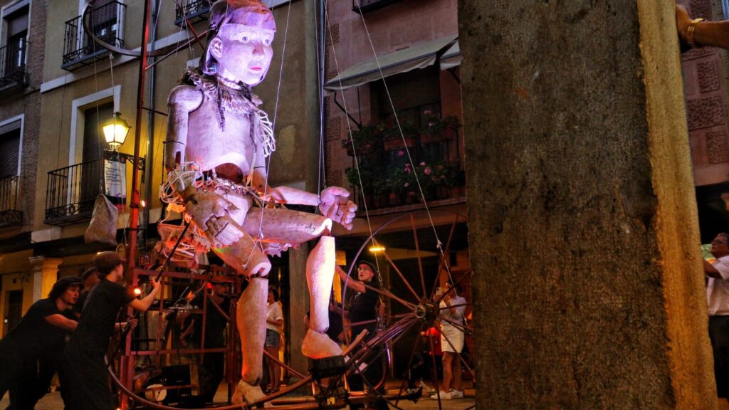 Espectáculo multidisciplinar donde una marioneta de hilo de cinco metros reconoce el mundo a través de los cinco sentidos.